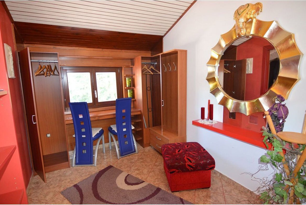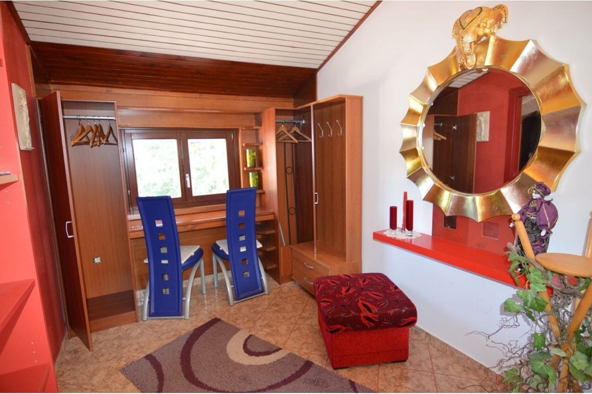 Der Zugang zum Anwesen ist gepflastert, was eine einfache und bequeme Zufahrt ermöglicht. Ein eigener Parkplatz steht ebenfalls zur Verfügung, um Ihr Fahrzeug sicher abzustellen.