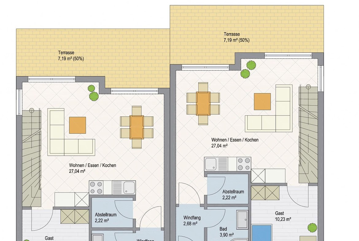 Ausstattung: z.B. Bodenbelege-Fliesen, Fenster, Türen, Sanitär/Dusche/WC, Klimaanage. Fordern Sie unsere detalierte Bauleistungsbeschreibung an.
