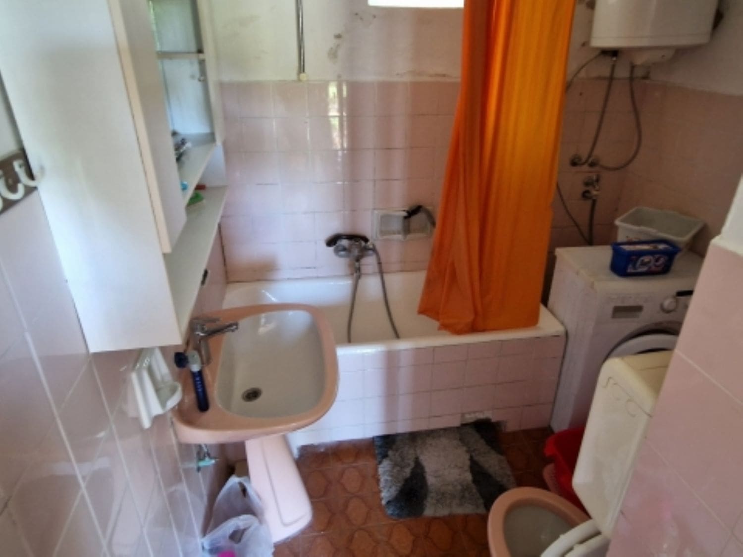 • Badausstattung Dusche, Badewanne, Fenster im Badezimmer