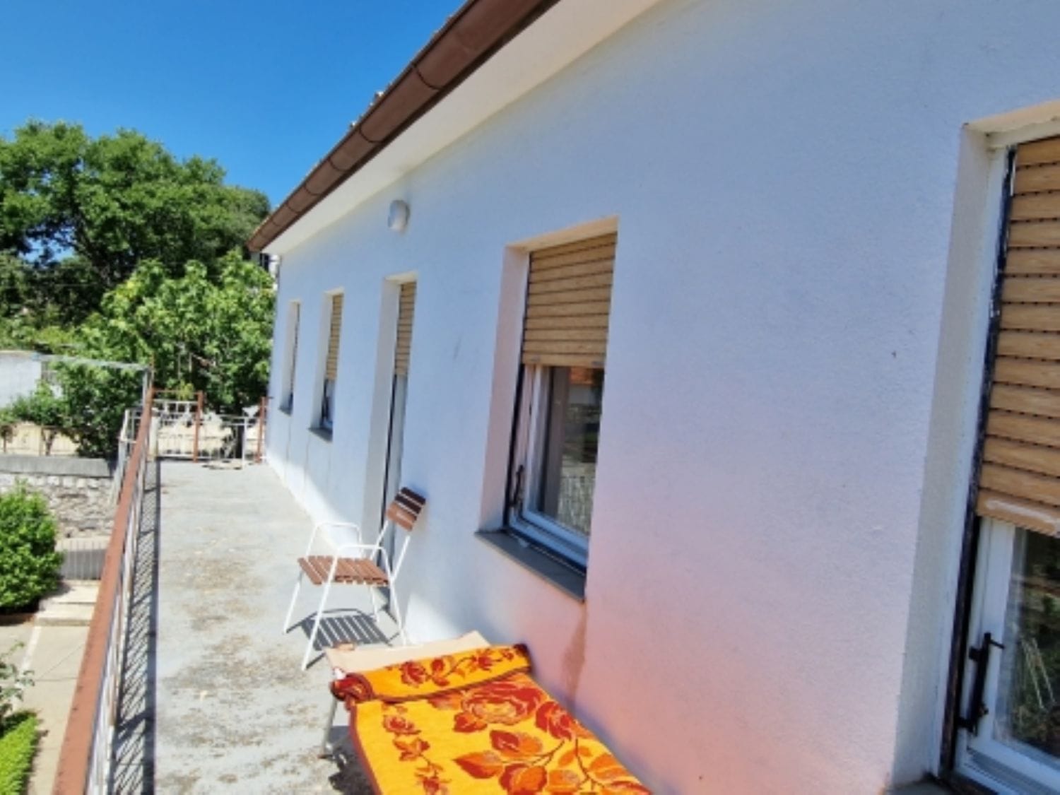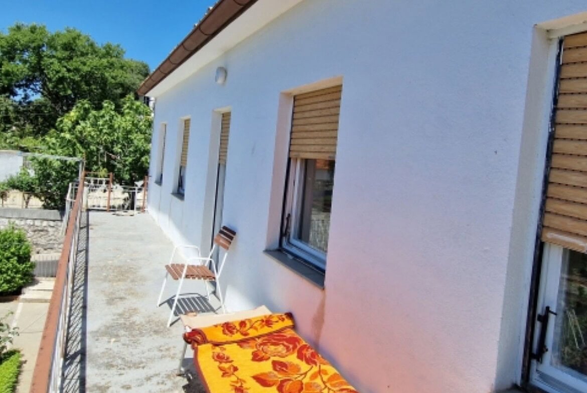 Die Immobilie bietet auch einen Balkon und eine Terrasse mit Möbeln sowie einen Garten mit Grillmöglichkeiten. Das Haus wurde zuletzt 2008 renoviert und wurde 1960 erbaut.