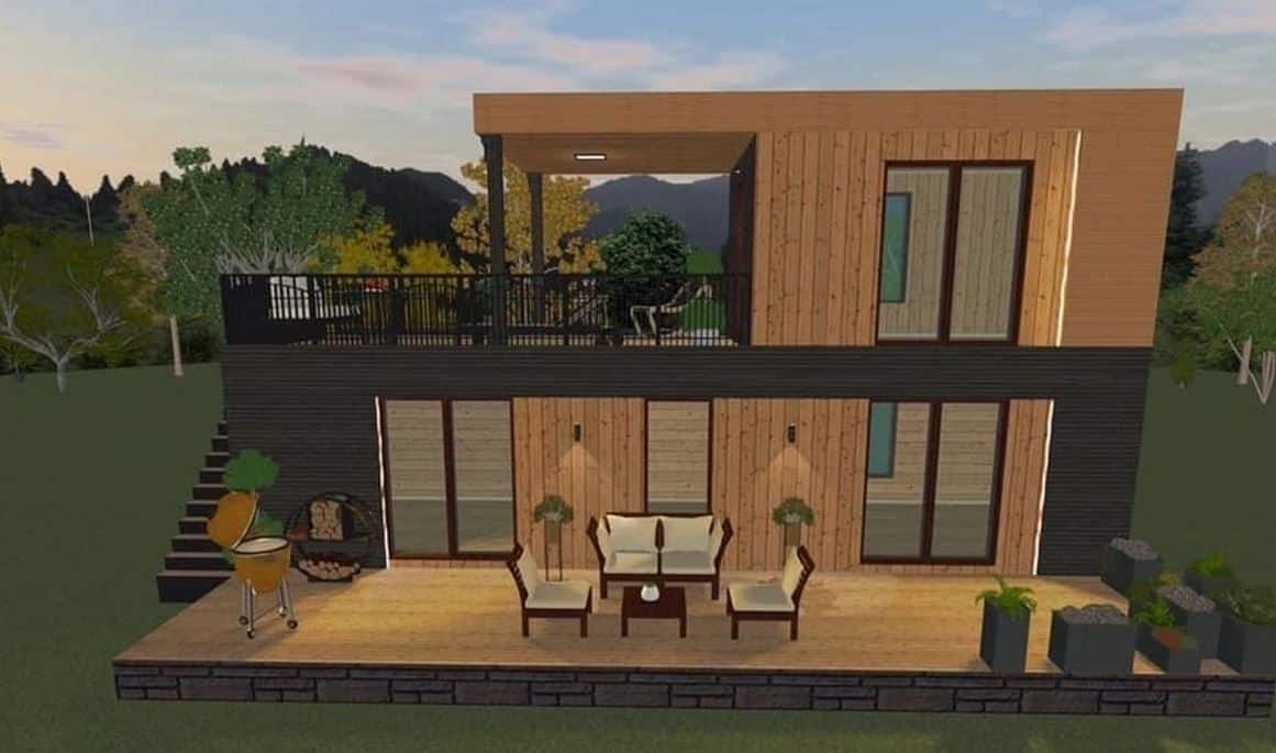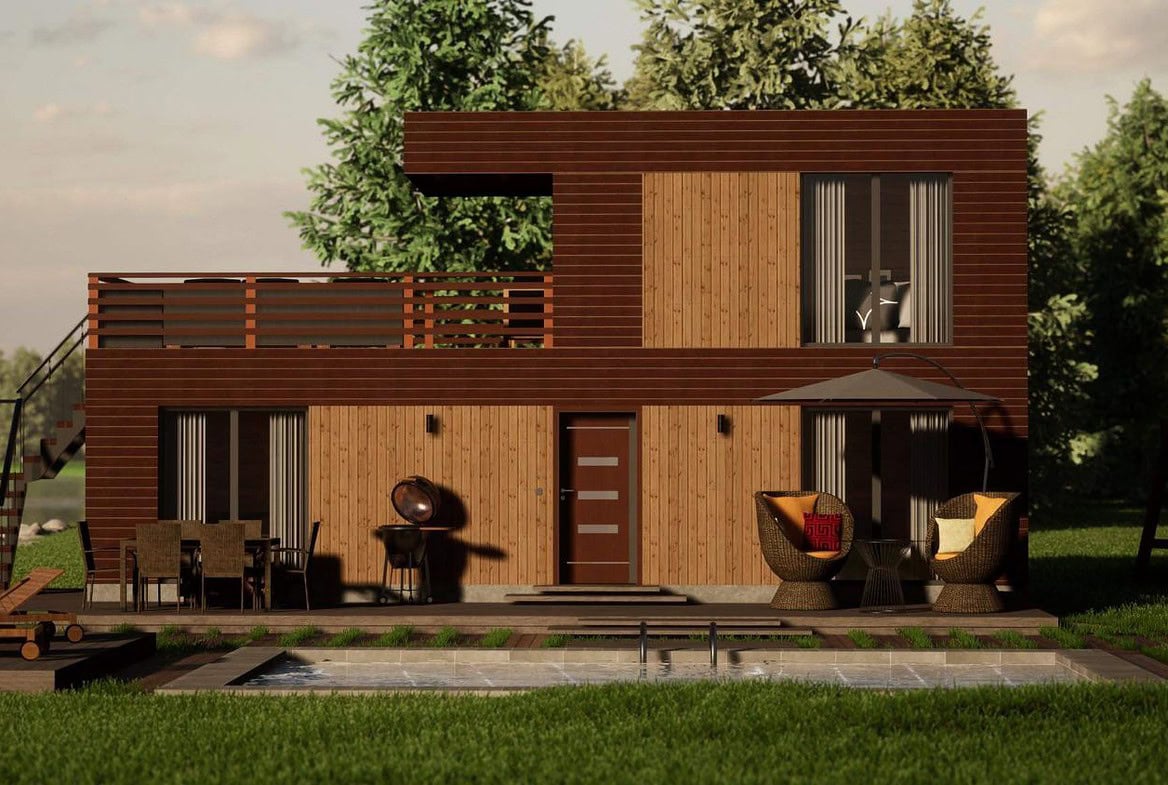Das Flachdach, die Premium-Fenster und -Innentüren sowie die erstklassige Täfelung aus sibirischem Kiefernholz verleihen dem Haus ein elegantes, modernes Ambiente. Der hochwertige Laminatboden und die LED-Beleuchtung im Innen- und Außenbereich sorgen für eine angenehme Atmosphäre.