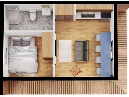 Die Ausstattung überzeugt mit hochwertigen Markenprodukten, von stilvollen Fliesen bis hin zu modernen Sanitäranlagen.