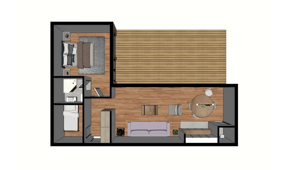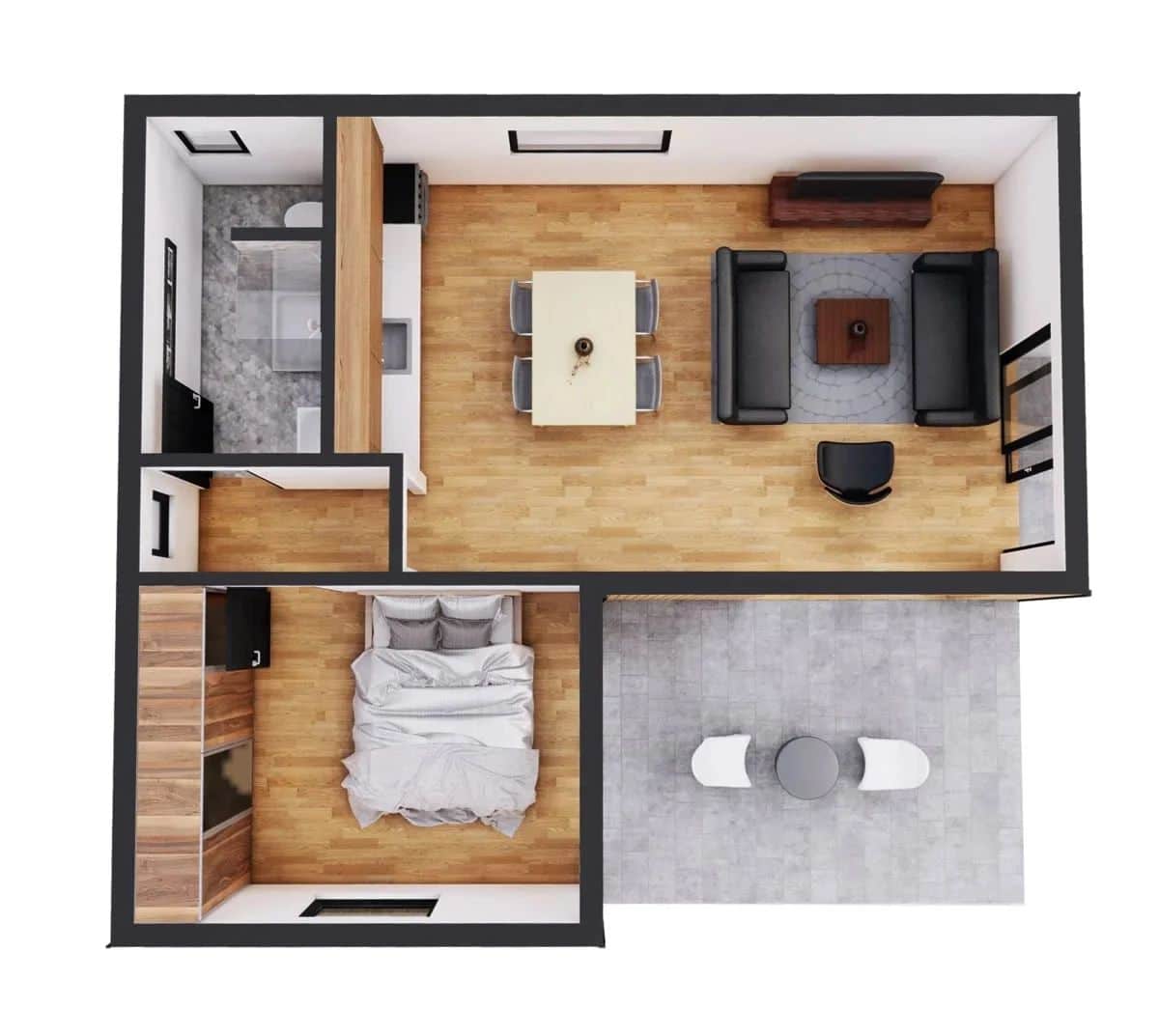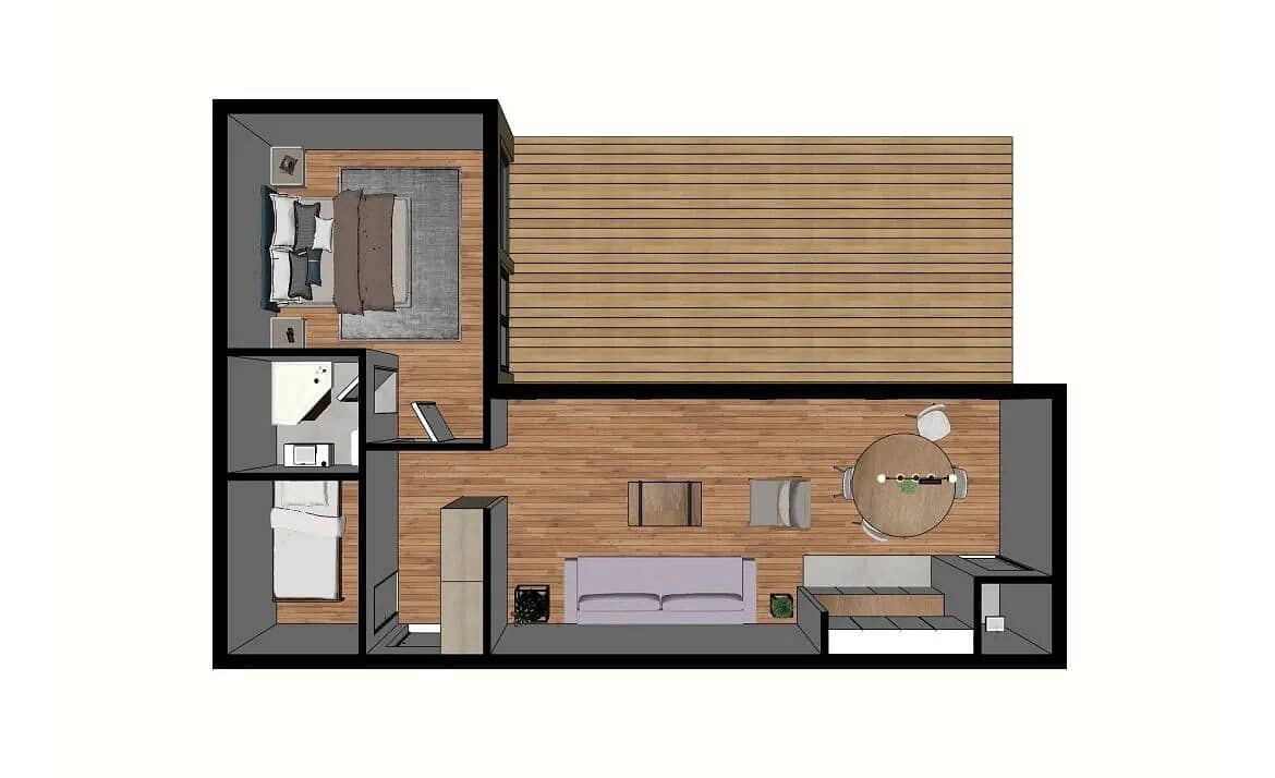 Eine Sicherheitshaustür sorgt für zusätzlichen Schutz. Auf Wunsch kann das Haus mit einem Swimmingpool ausgestattet werden.