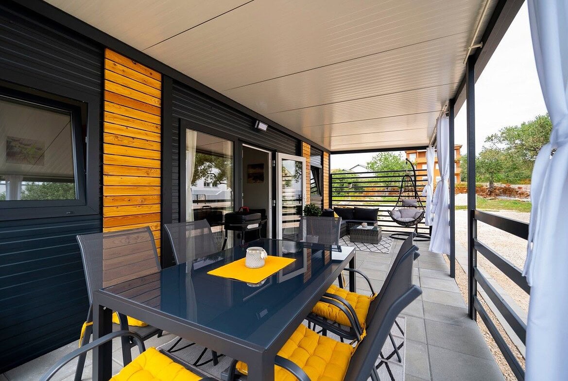 Die moderne Einrichtung des Hauses umfasst eine voll ausgestattete Küche sowie eine gemütlich möblierte Terrasse, die überdacht ist und somit auch an heißen Tagen oder bei Regen zum Verweilen einlädt. Die großzügige Terrasse ermöglicht es, die Aussicht auf das Meer und die umliegende Natur in vollen Zügen zu genießen.