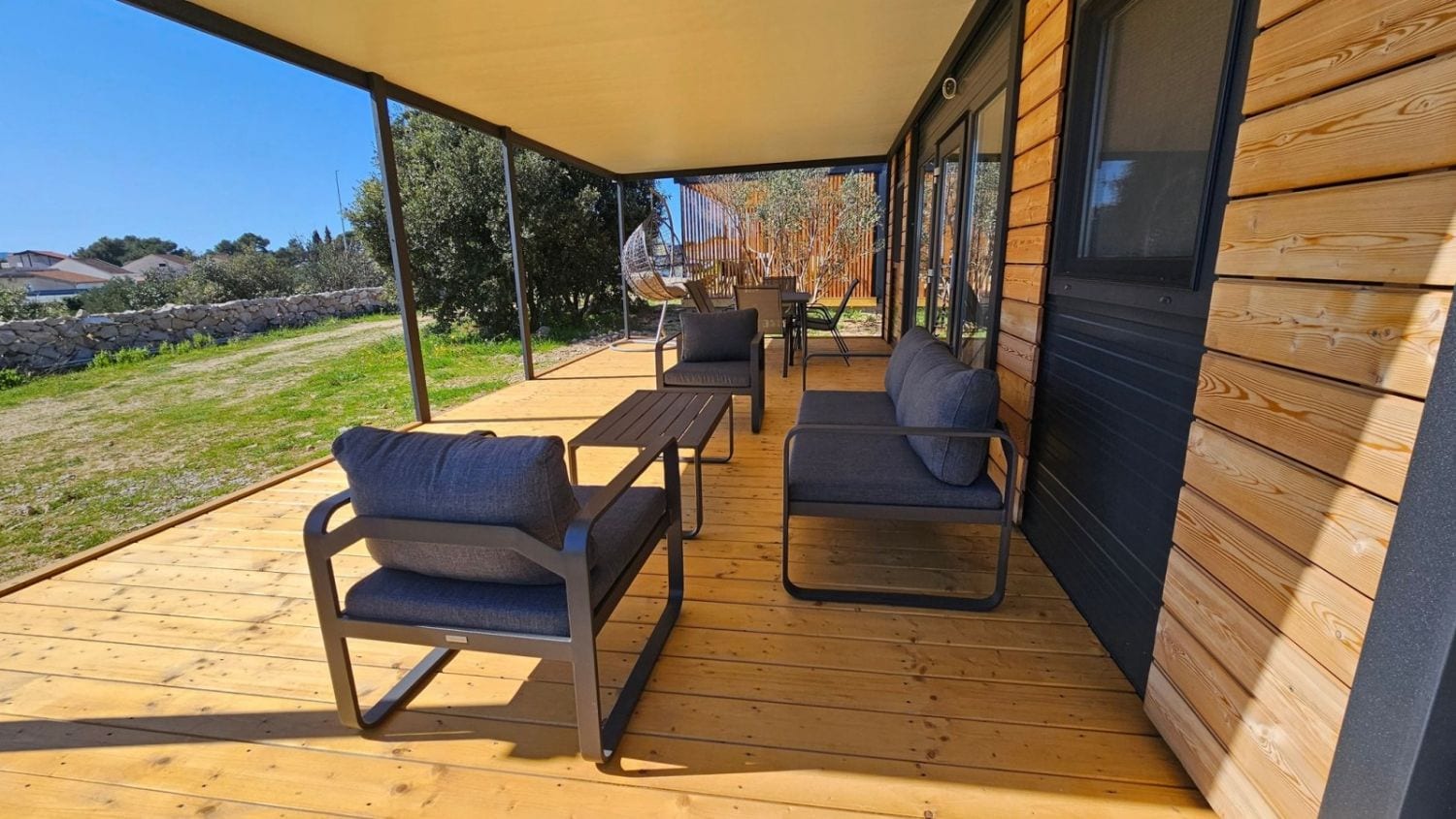 Nur 1 Kilometer vom Strand entfernt, auf der Insel Pag in Dinjiška, steht ein schlüsselfertiges Mobilheim auf einem 300 m² großen Grundstück zum Verkauf.