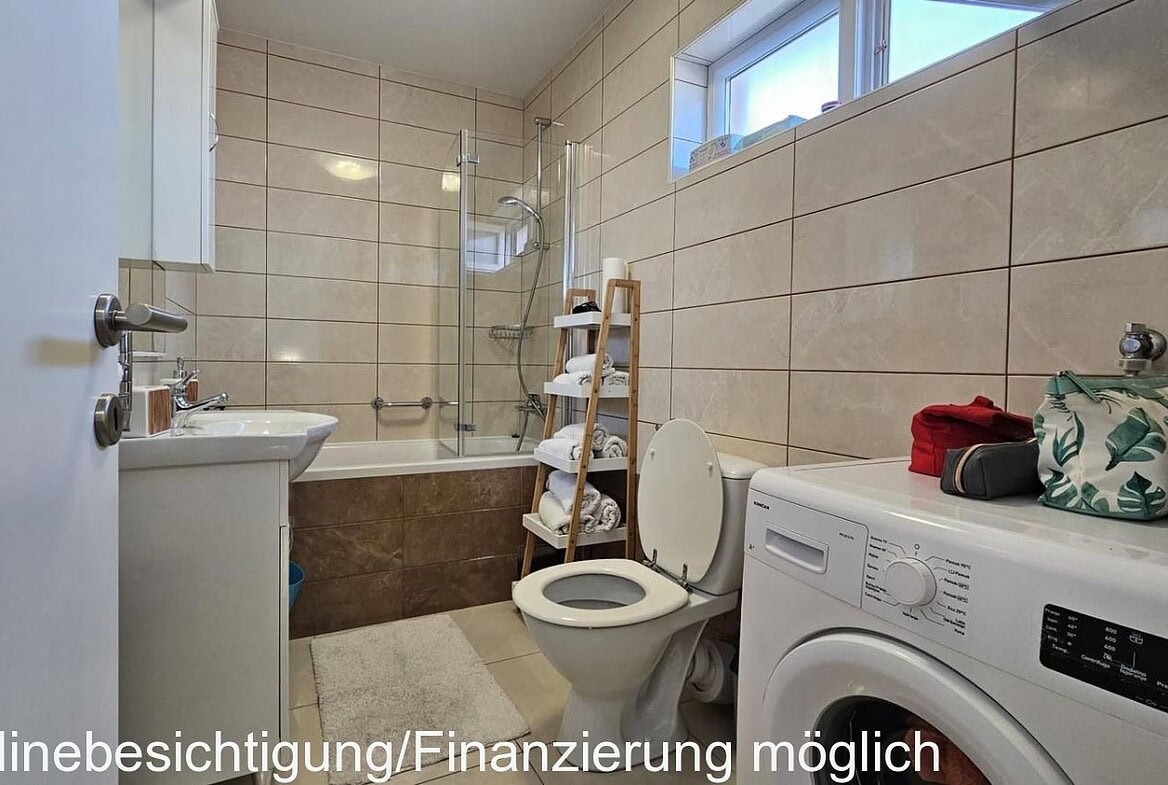 - Badausstattung Dusche, Badewanne, Fenster im Badezimmer