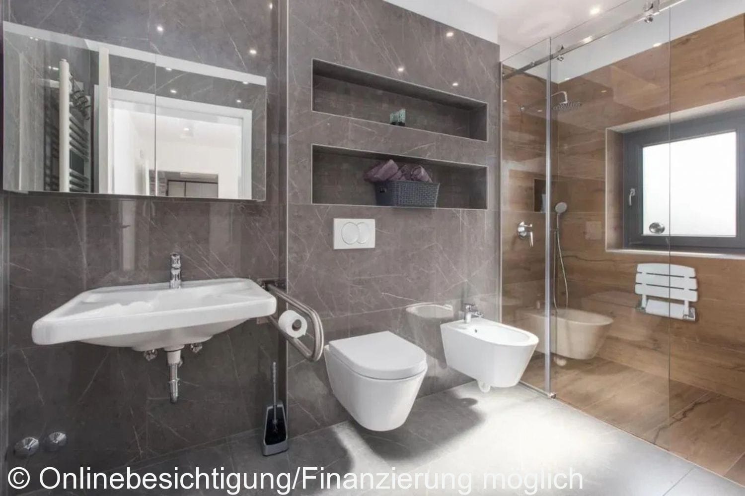 - Badausstattung Dusche, Badewanne, Fenster im Badezimmer, Bidet