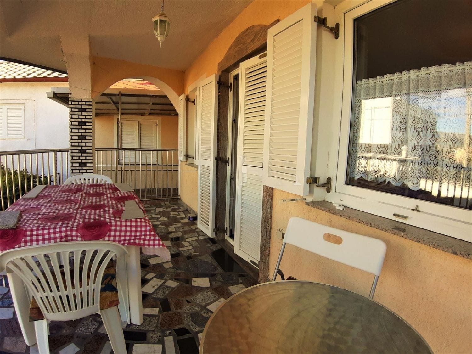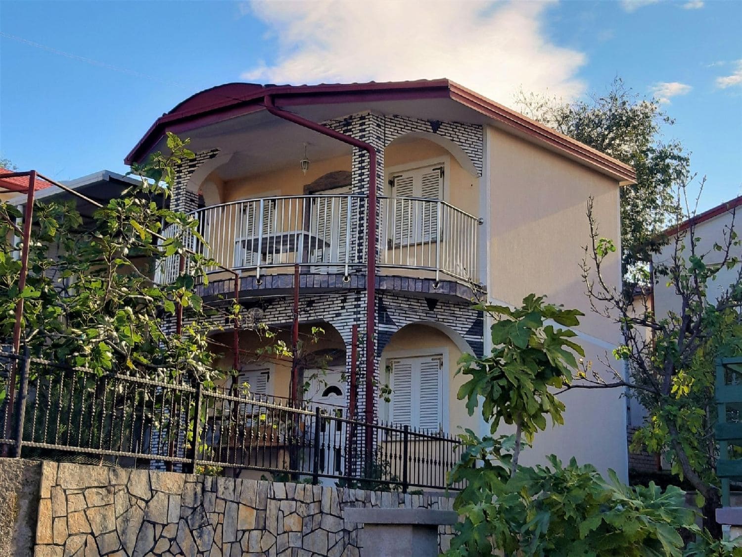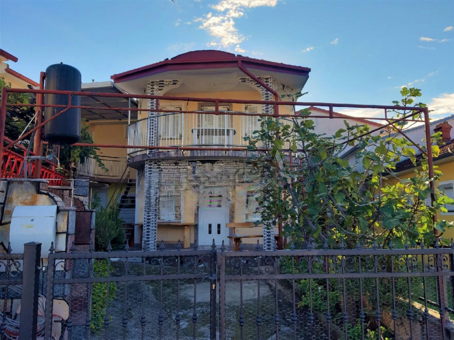 Das Anwesen verfügt über einen eingezäunten Hof, der Platz für zwei Parkplätze bietet. Die Lage des Hauses ermöglicht eine friedliche Umgebung und gleichzeitig eine bequeme Nähe zum Stadtzentrum und seinen Annehmlichkeiten sowie einen malerischen Ausblick auf das Meer und die Stadt.