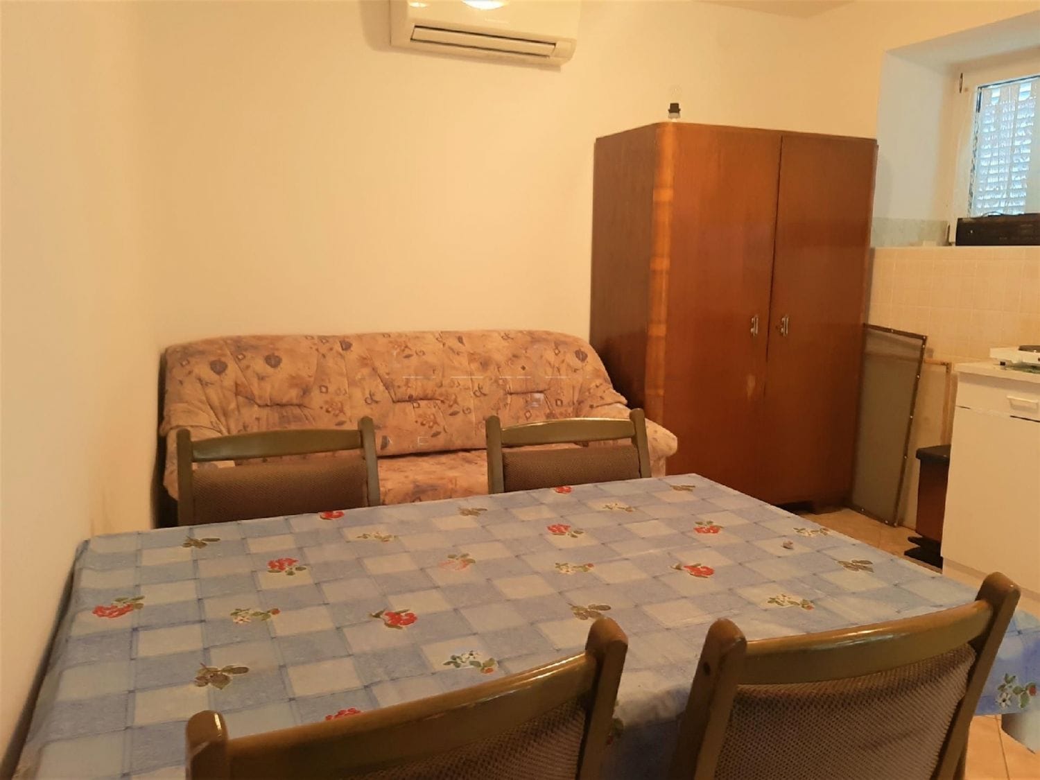 Im Erdgeschoss befinden sich zwei Einzimmerwohnungen, während eine Außentreppe zum ersten Stock führt, wo sich eine weitere Einzimmerwohnung sowie eine weitere Einzimmerwohnung mit einem Balkon befinden. Alle Wohnungen sind komplett möbliert und mit Klimaanlagen ausgestattet, um maximalen Komfort zu bieten.