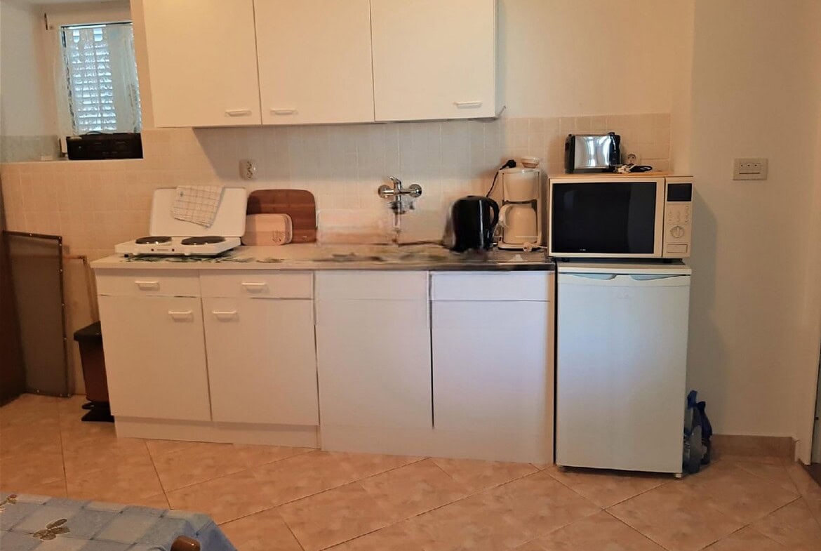 Im Erdgeschoss befinden sich zwei Einzimmerwohnungen, während eine Außentreppe zum ersten Stock führt, wo sich eine weitere Einzimmerwohnung sowie eine weitere Einzimmerwohnung mit einem Balkon befinden. Alle Wohnungen sind komplett möbliert und mit Klimaanlagen ausgestattet, um maximalen Komfort zu bieten.
