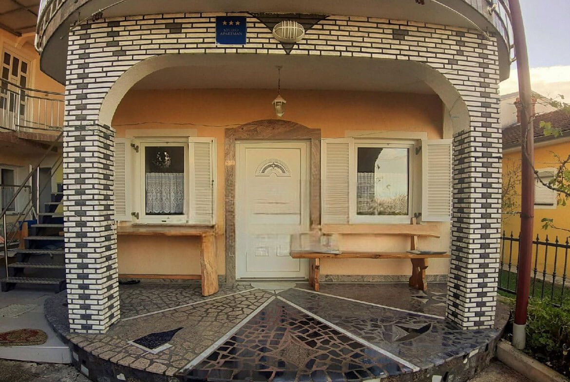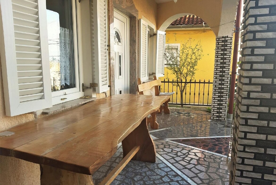 Das Anwesen verfügt über einen eingezäunten Hof, der Platz für zwei Parkplätze bietet. Die Lage des Hauses ermöglicht eine friedliche Umgebung und gleichzeitig eine bequeme Nähe zum Stadtzentrum und seinen Annehmlichkeiten sowie einen malerischen Ausblick auf das Meer und die Stadt.