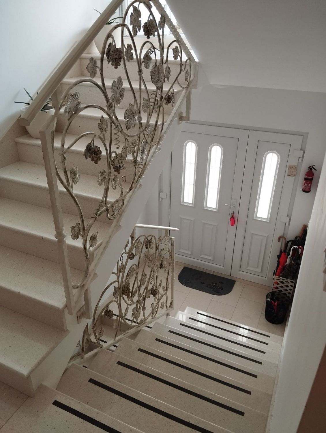 Das Steinhaus ist in fünf Wohneinheiten unterteilt, davon zwei im Erdgeschoss, zwei im ersten Stock und zwei im Dachgeschoss. Jede Wohnung besteht aus einem Schlafzimmer, einem Wohnzimmer mit Küche, einem Badezimmer und einem Balkon oder einer Terrasse. Die Dachgeschosswohnung bietet zusätzlich zwei Schlafzimmer und Badezimmer, einen Balkon sowie eine geräumige Küche und ein Wohnzimmer. Vom ersten Stock aus genießt man teilweisen Meerblick, während das Dachgeschoss einen uneingeschränkten Blick auf das Meer bietet.