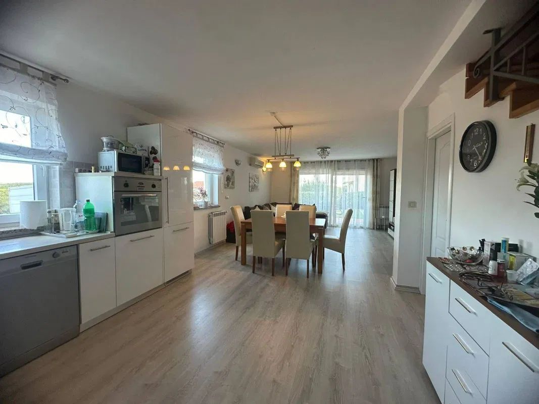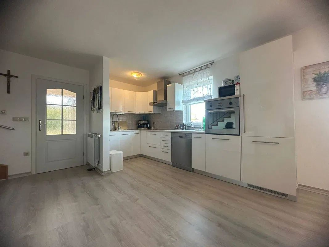 Im Herzen des Hauses liegt das offene Wohnzimmer, das nahtlos mit der Küche verbunden ist. Hier entstehen ideale Bedingungen für gesellige Abende mit Familie und Freunden. Der Raum bietet viel Licht und ist der perfekte Ort, um den Tag entspannt ausklingen zu lassen. Die drei Schlafzimmer sind freundlich und hell gestaltet und bieten ausreichend Platz für Ruhe und Rückzug ideal für jedes Familienmitglied.