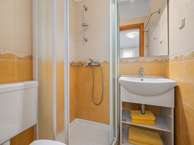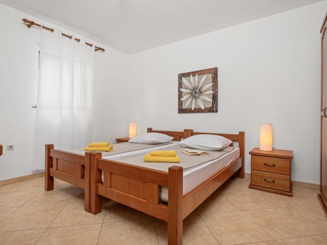 Die Wohnung liegt nur 1000 Meter vom Meer entfernt und ist bequem zu Fuß erreichbar. Auf einer Fläche von 53,85 m² bietet sie eine gut durchdachte Raumaufteilung: eine Küche mit Essbereich, ein Wohnzimmer, zwei Schlafzimmer, ein Badezimmer und einen Abstellraum. Der Wohnbereich führt auf eine überdachte Terrasse, die in einen großzügigen Garten übergeht ideal zum Entspannen oder für gesellige Stunden.