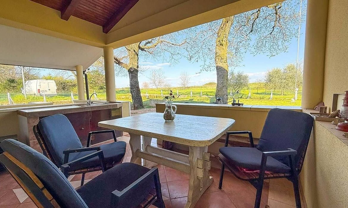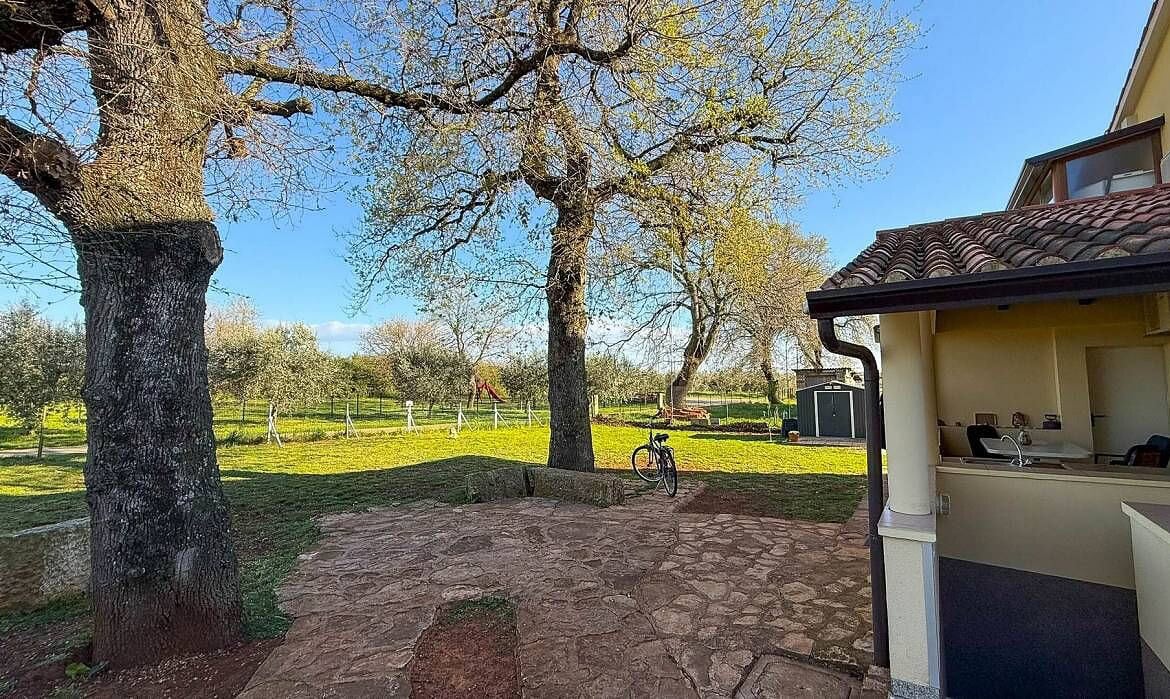 Ein besonderes Highlight ist der gepflegte Garten, der zum Entspannen und Genießen der istrischen Sonne einlädt. Von hier aus bietet sich ein schöner Blick auf die umliegenden Olivenhaine und das Grün der Landschaft. Ein Parkplatz steht direkt am Haus zur Verfügung.