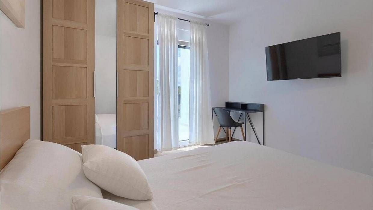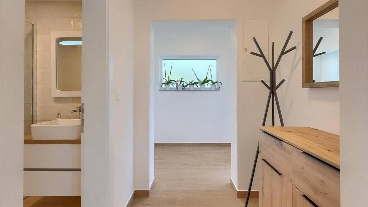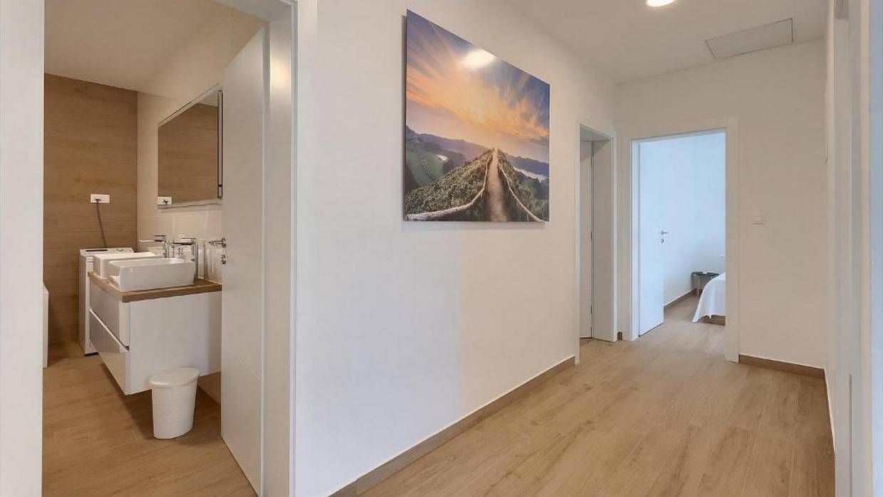 Eine elegante Treppe führt in den ersten Stock, wo sich vier komfortable Schlafzimmer und zwei Badezimmer befinden. Zwei der Schlafzimmer verfügen über einen Balkon mit einem traumhaften Blick auf die grüne istrische Landschaft und den glitzernden Pool – der perfekte Ort, um den Tag mit einer Tasse Kaffee zu beginnen oder bei Sonnenuntergang ausklingen zu lassen.