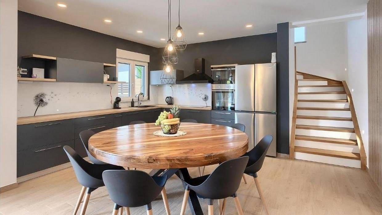 Das Erdgeschoss besticht durch ein helles, modern eingerichtetes Wohnzimmer mit direktem Zugang zum Poolbereich. Die voll ausgestattete Küche mit Esszimmer sorgt für höchsten Komfort, während ein stilvolles Badezimmer den Wohnbereich ergänzt.