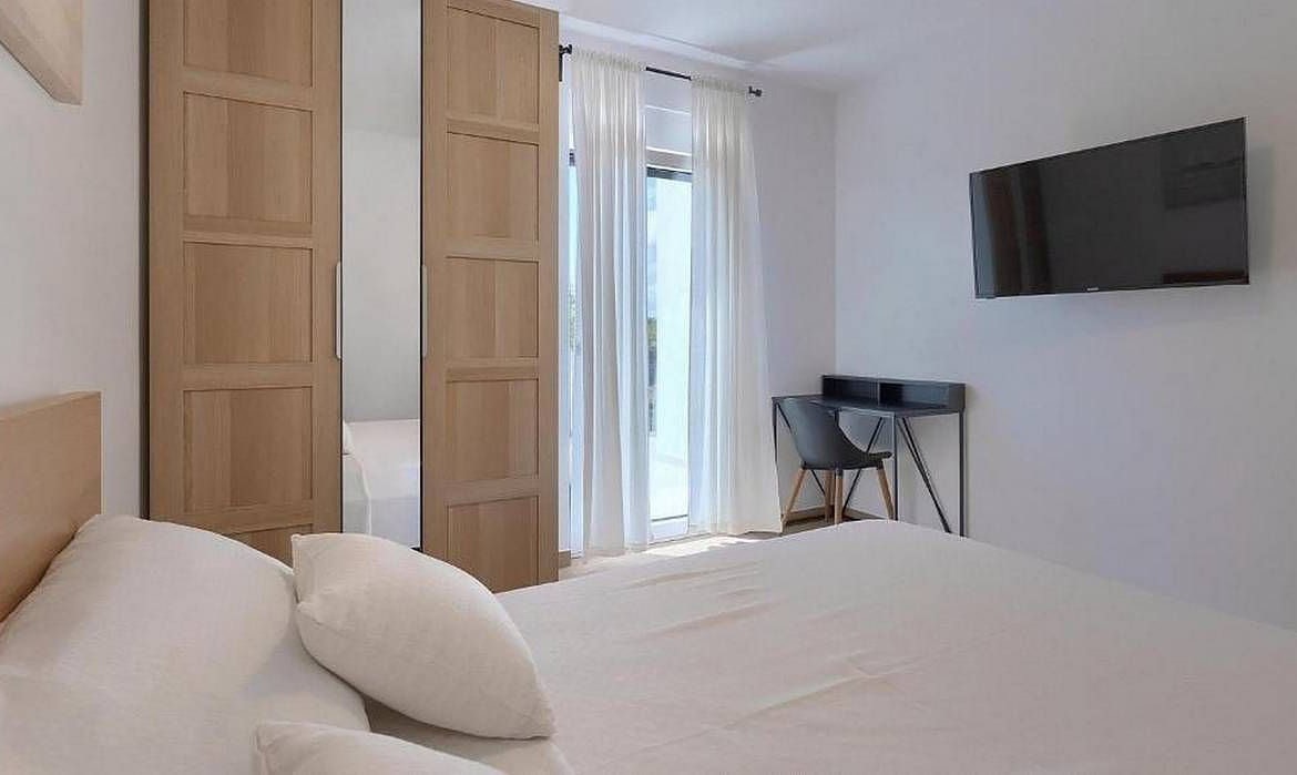 Das Erdgeschoss besticht durch ein helles, modern eingerichtetes Wohnzimmer mit direktem Zugang zum Poolbereich. Die voll ausgestattete Küche mit Esszimmer sorgt für höchsten Komfort, während ein stilvolles Badezimmer den Wohnbereich ergänzt.