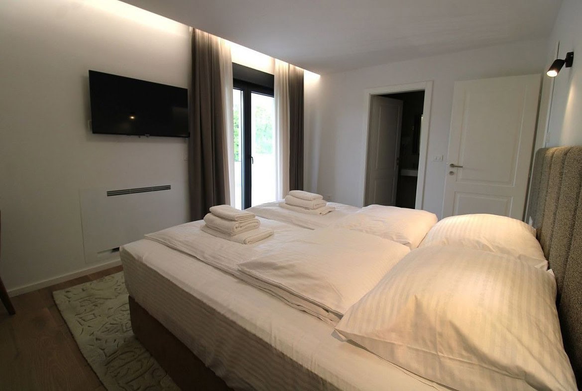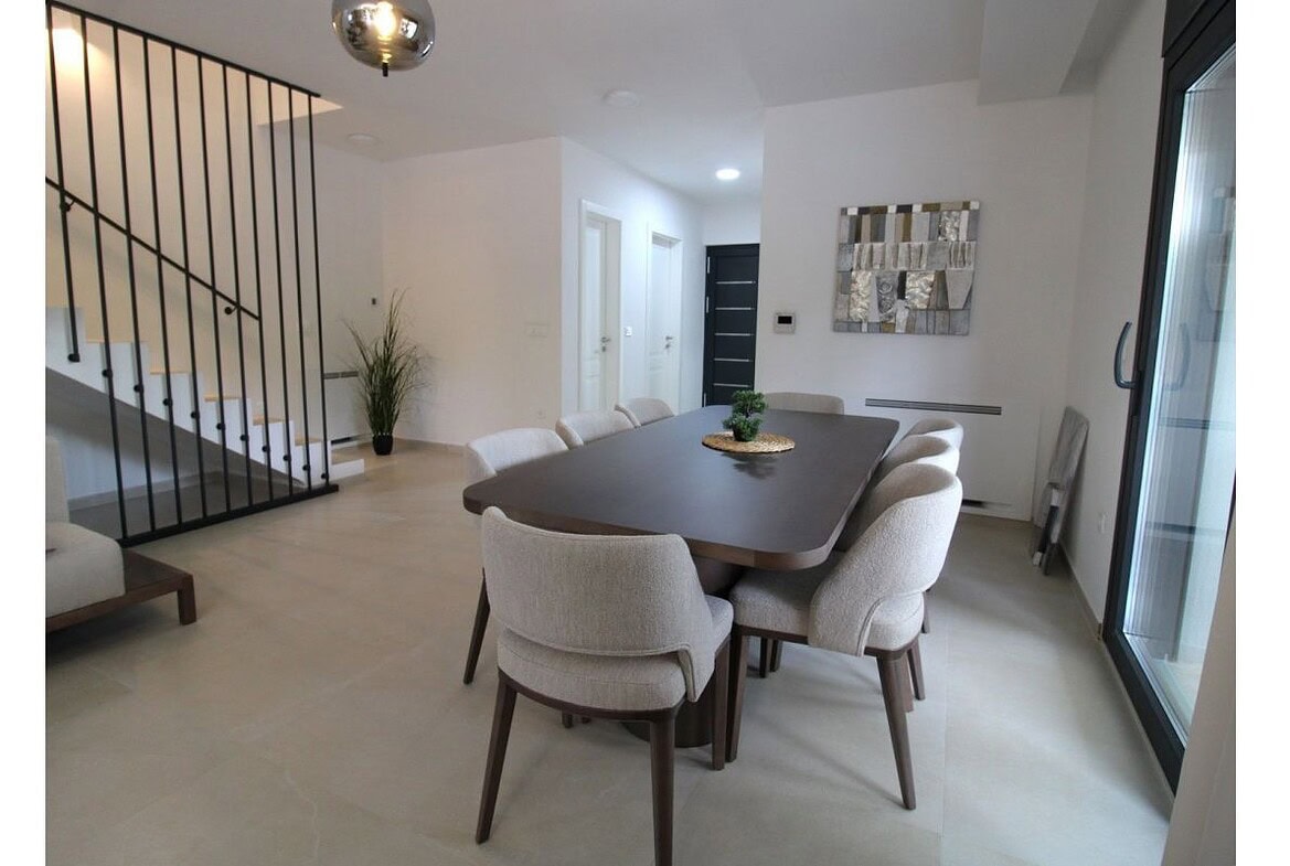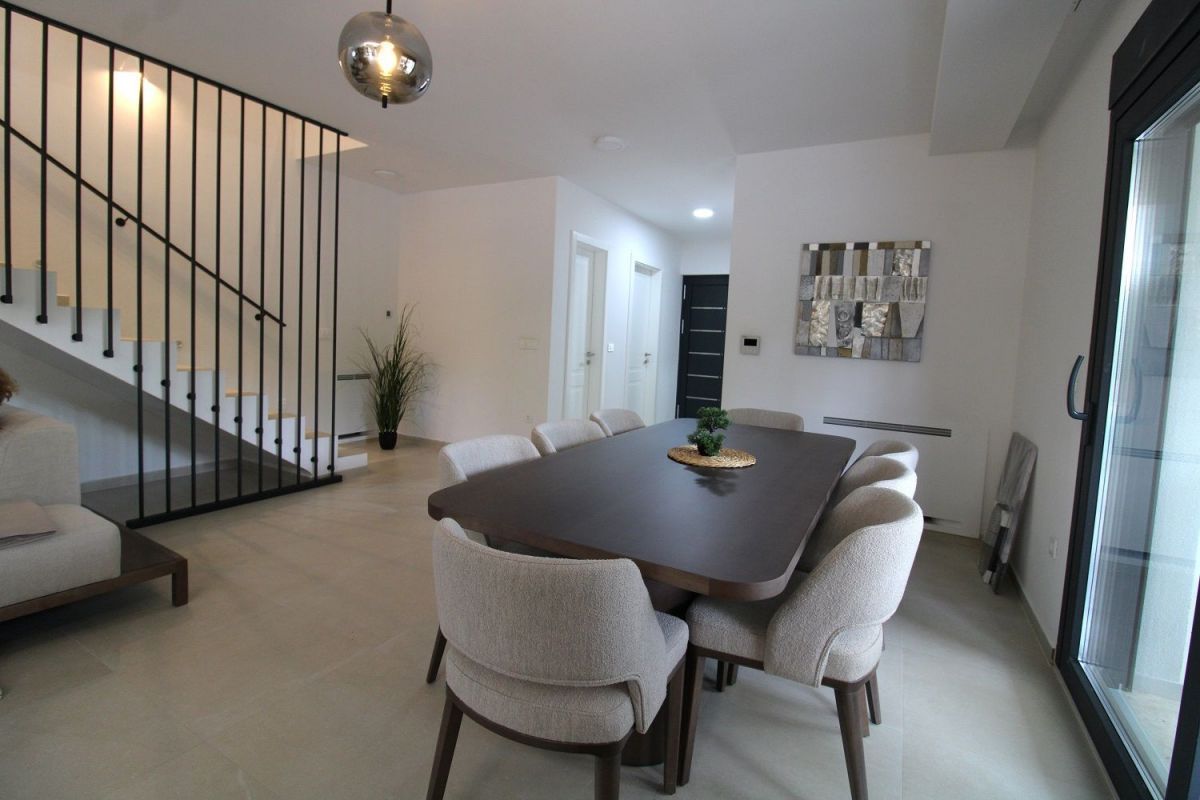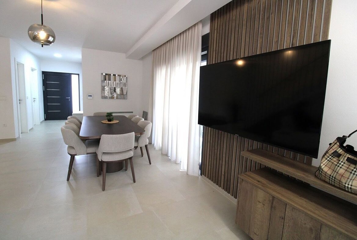 Die Villa ist mit einer modernen 16-kW-Wärmepumpe ausgestattet, die eine Fernzündung ermöglicht, sowie Fußbodenheizung und Gebläsekonvektoren in allen Räumen. Die Fenster sind aus hochwertigem PVC mit dreischichtigem Argonglas, Moskitonetzen und elektrischen Jalousien. In den Schlafzimmern befindet sich hochwertiges Parkett, während jedes Badezimmer mit modernen Annehmlichkeiten wie Heizkörpern, einem an der Wand montierten Haartrockner und Antibeschlagspiegeln ausgestattet ist.