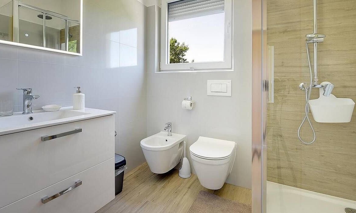 - Badausstattung Dusche, Fenster im Badezimmer, Bidet