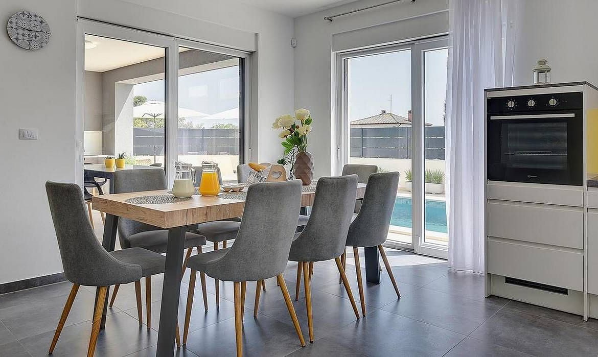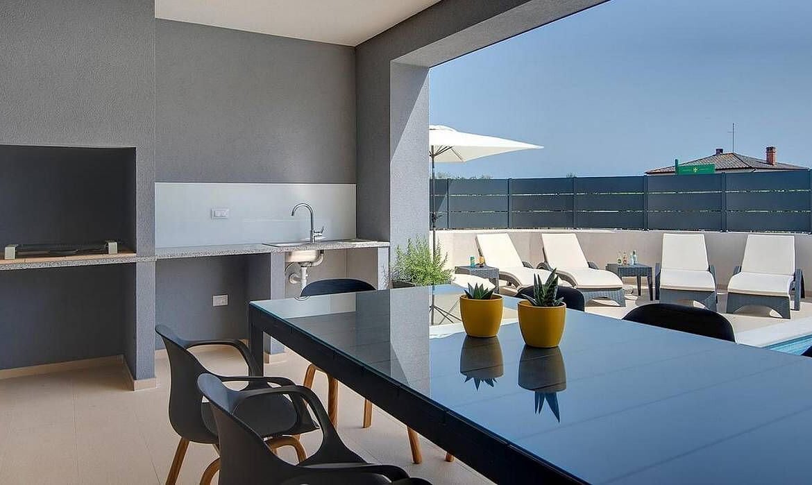 Das Herzstück des Außenbereichs ist der 8 x 4 Meter große Swimmingpool mit gepflegtem Sonnendeck, das zum Entspannen und Genießen der istrischen Sonne einlädt.